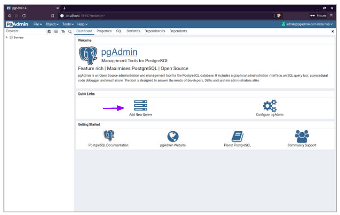 - Open pgAdmin